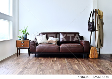 皮沙發的房間 客廳和沙發 帶地板的房子