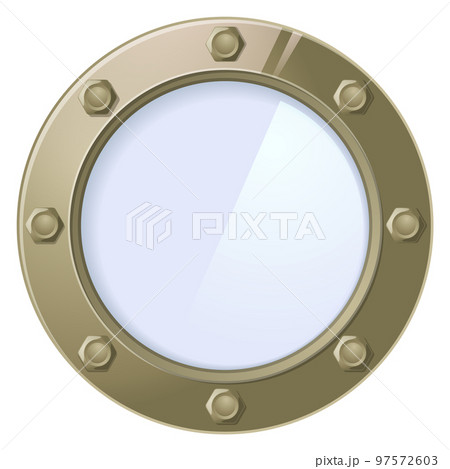 Round glass frame. Ship porthole. Jet window