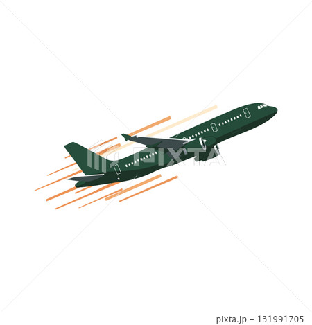 Commercial airplane flying in blue and white colors with vapor trails vector illustration