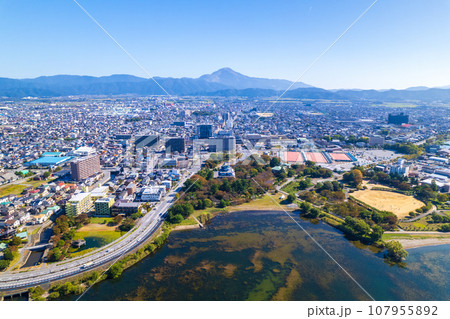 全景 | 無人機 | 長濱市琵琶湖畔的長濱城與伊吹山鳥瞰圖 | 滋賀郡長濱市