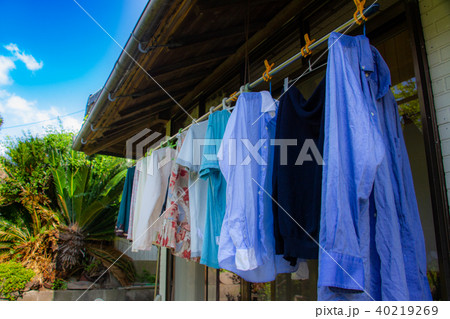 日式房屋簷下的洗衣房,秋天的陽光明媚