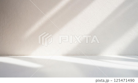 自然光照進來的白色牆壁、美容和化妝品背景紋理