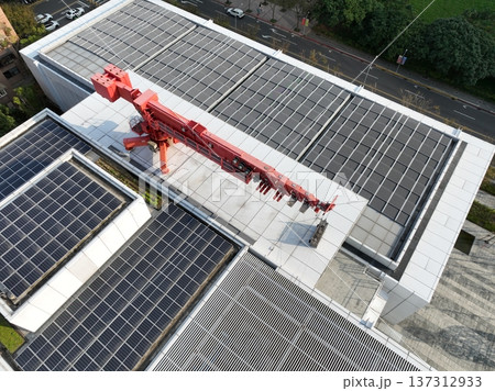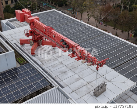 The roof of a hangar, a production hall or a sports hall. Metal structures, beams, supporting elements. Ventilation systems in large halls and rooms. Skylights. Industrial interior