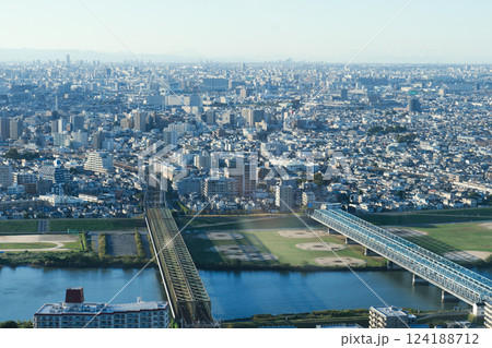 Tokyo Sky Tree and Tokyo cityscape view from the Ichikawa I-link town Observation deck