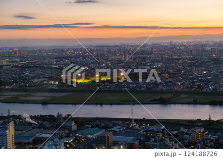 Sunset at Tokyo Sky Tree and Tokyo cityscape view from the Ichikawa I-link town Observation deck