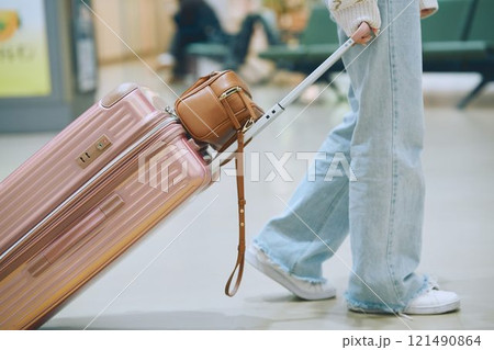 機場大廳裡一位準備獨自旅行的女士