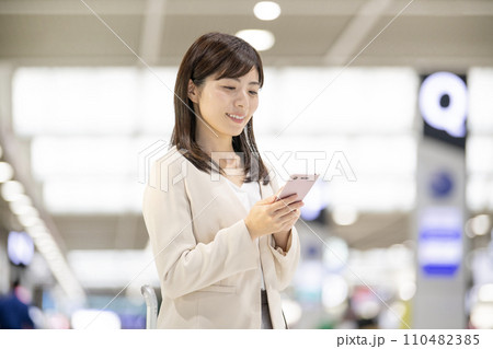 機場大廳公告板女人手機