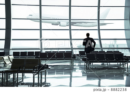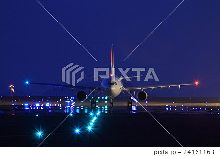 一架噴氣式客機進入起飛系統並等待來自控制塔的指令