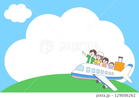 一家四口帶著孩子搭飛機旅行的時尚插圖