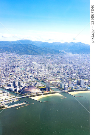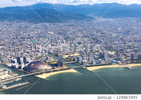 從上空俯瞰福岡灣地區