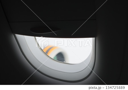 Fragment of interior view of modern Airplane.