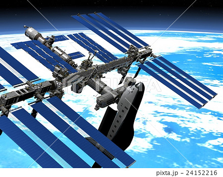 地球和國際空間站和航天飛機3DCG perming3DCGmp160819插圖素材