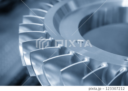 Close up scene the jet engine parts in the blue tone scene.