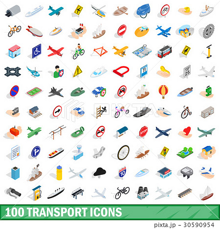 100 transport icons set, isometric 3d style