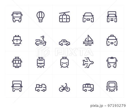 Transportation line icon set. Vector illustration on white background. Pixel perfect.
