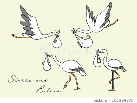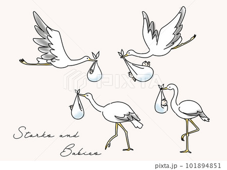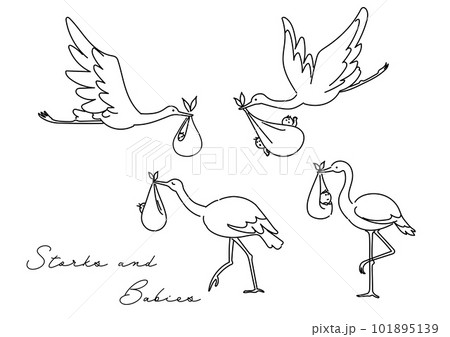 攜帶襁褓嬰兒的鸛的矢量線圖