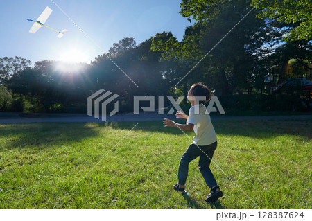在天空中自由飛行的螺旋槳飛機[紙模型]