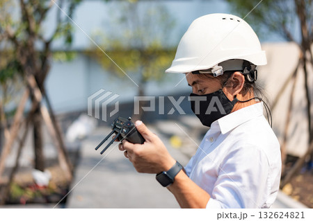 Man controling a drone.