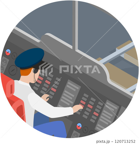 3D Isometric Flat Vector Illustration of Train Driver, Inside View from a Cabin
