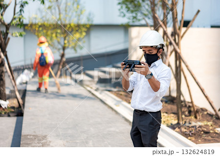 Young man piloting drone outdoor