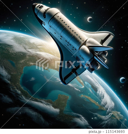 沐浴在陽光下的太空船、行星和飛機的輪廓