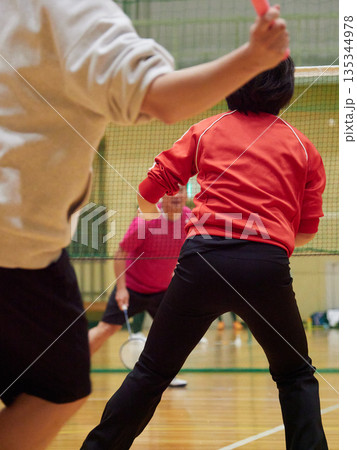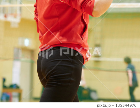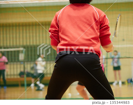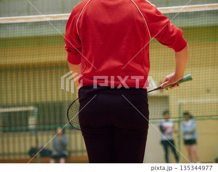 一名女子在健身房練習羽毛球