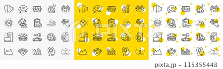 Outline Video conference, Collagen skin and Upper arrows line icons pack for web with Diagram, Text message, Sports arena line icon. Approved report, Psychology. Yellow design with 3d stars. Vector