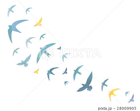 一群黑鳥在白色背景上飛翔的剪影般的抽象視覺