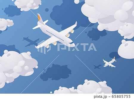 Isometric passenger airplane flying in the sky