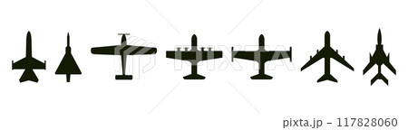Aeroplane, planes and biplane. Set of colorful flat airplanes.