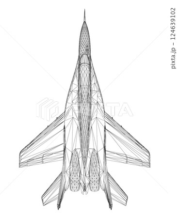 Military fighter jet wireframe. Vector art illustration of wireframe airplane. Modern war aircraft. Supersonic speed. 3D.