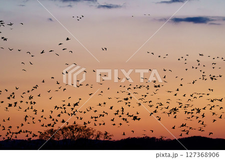從美唄宮島沼起飛的雁群(傍晚景色)