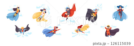 Boy and Girl Superhero Wearing Cloak and Cape Vector Set