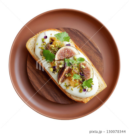 Smooth Foie Gras Mousse Canape on Crisp Brioche with Fig Gel and Crushed Pistachios Garnish