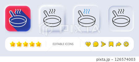 Frying pan line icon. Neumorphic, Flat shadow, 3d buttons. Cooking sign. Food preparation symbol. Line frying pan icon. Social media icons. Vector