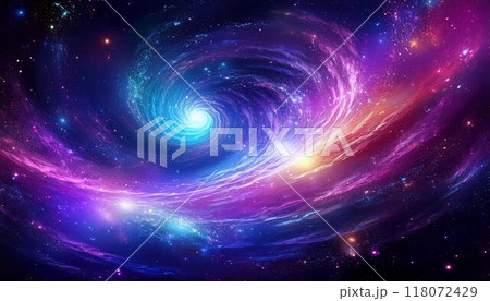 星系的抽象空間影像,星塵和粒子像霓虹燈一樣閃閃發光