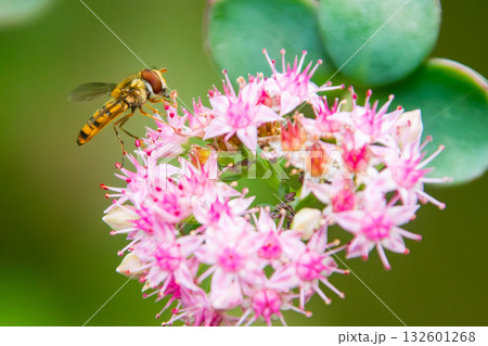 昆蟲正在從粉紅色小菊花上採集花蜜(授粉活動)