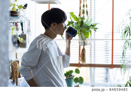 一位輕鬆的年輕女子在冬季客廳喝著熱飲的特寫