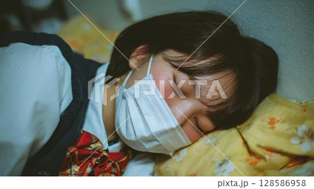 一名患流感的高中女生裹著被褥睡覺