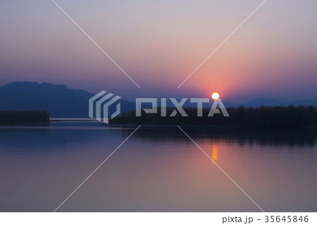 紅日餘暉映照河面