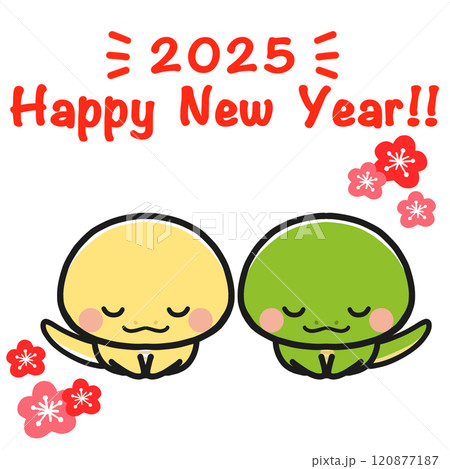 兩條蛇坐在墊子上,新年賀卡材料,和服,情侶,畫線