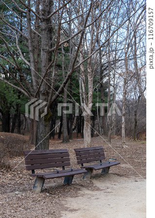 A couple of bench with view of Seoul Forest in early spring, South Korea