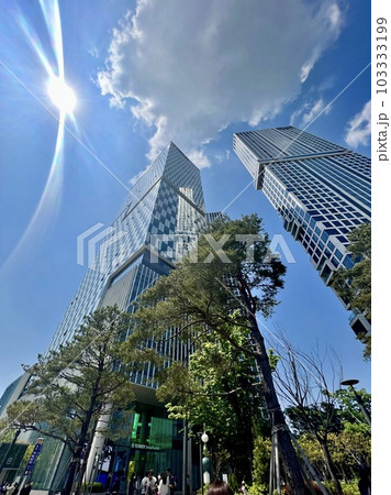 Skyscrapers towering over Seoul Forest, large public park in Seongdong District in Seoul, capital of South Korea