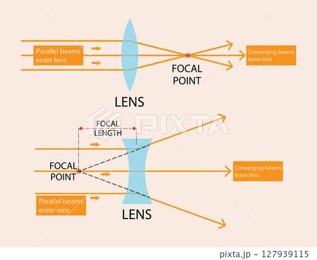 illustration of physics, Convex or converging lens, concave, diverging lens, light rays passing through lens, optics, photography, concave lens and convex lens, Diverging and converging lens