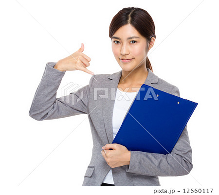 Woman hold with folder and thumb up