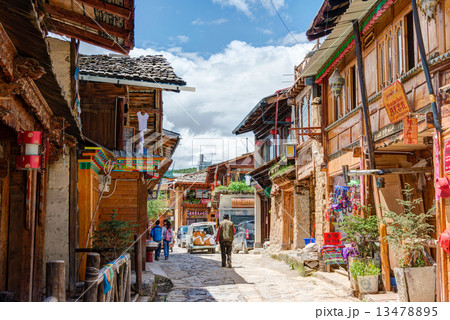 中國,雲南省,迪慶,香格里拉,西藏村落,木瓦房屋
