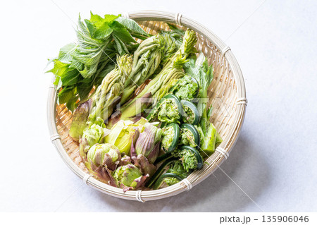 各種野生蔬菜:楤木芽、小莧菜、越紫莧菜和蜂斗菜。