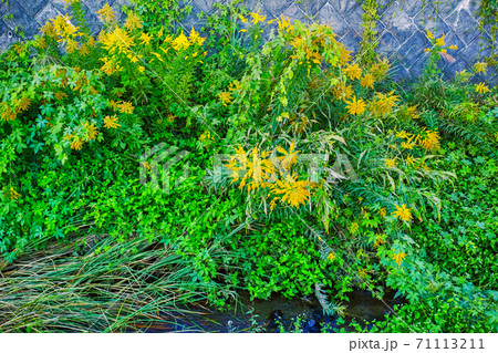 Seitaka Awadachisou這樣的雜草在河岸上開滿了水泥