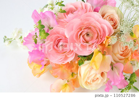 黃色毛茛和粉紅色香豌豆