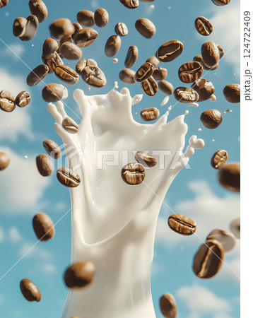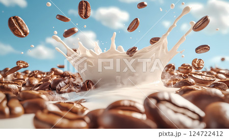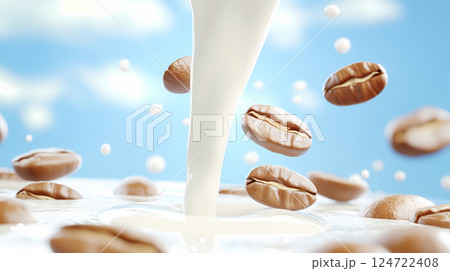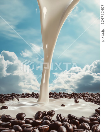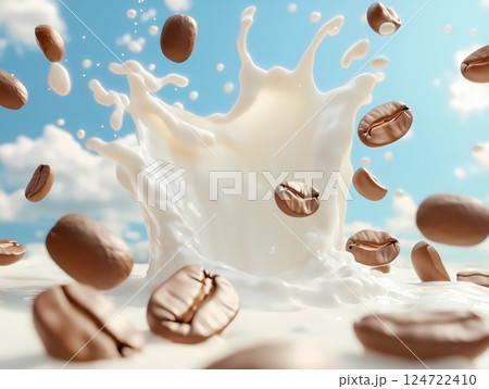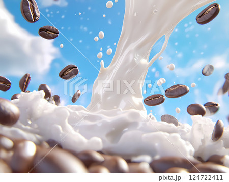 牛奶和咖啡豆的廣告插畫